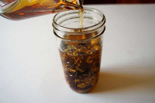 A continuación, agregue dos tazas de centeno a la jarra. Añadir centeno más si es necesario hasta que todos los ingredientes se cubren con el líquido.