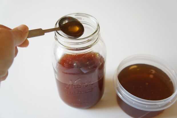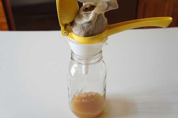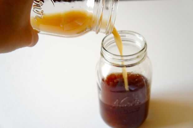 Deseche los sólidos y agregar este líquido en el frasco que contiene la solución original de centeno. Añadir dos cucharadas del jarabe rico a la jarra y agite el frasco para incorporar el jarabe.