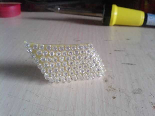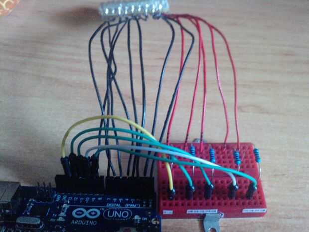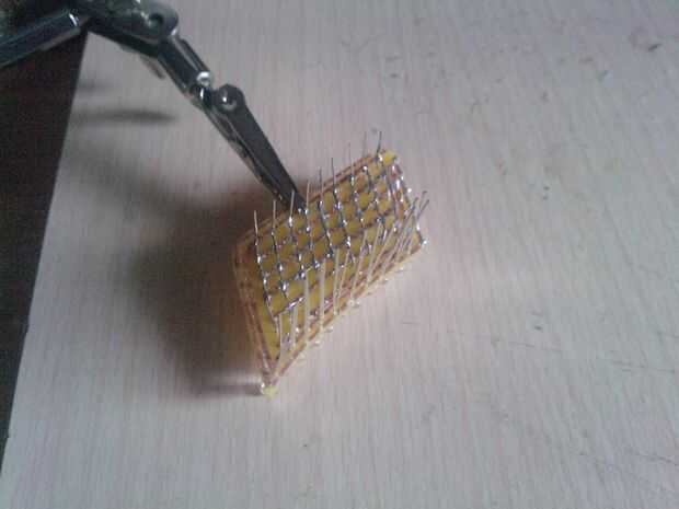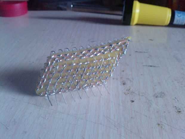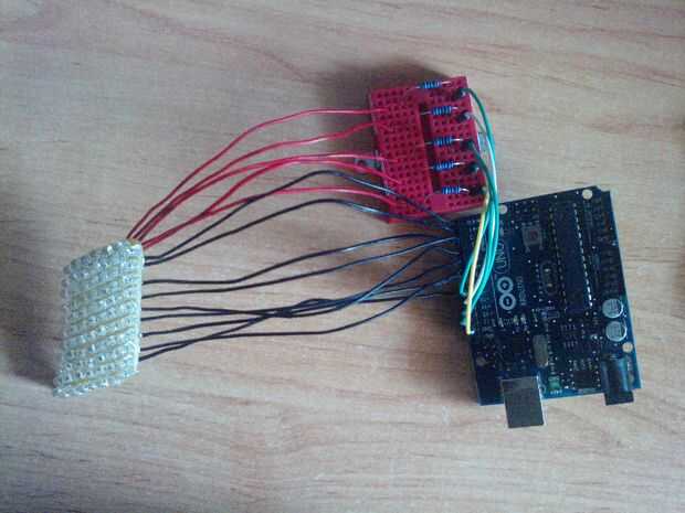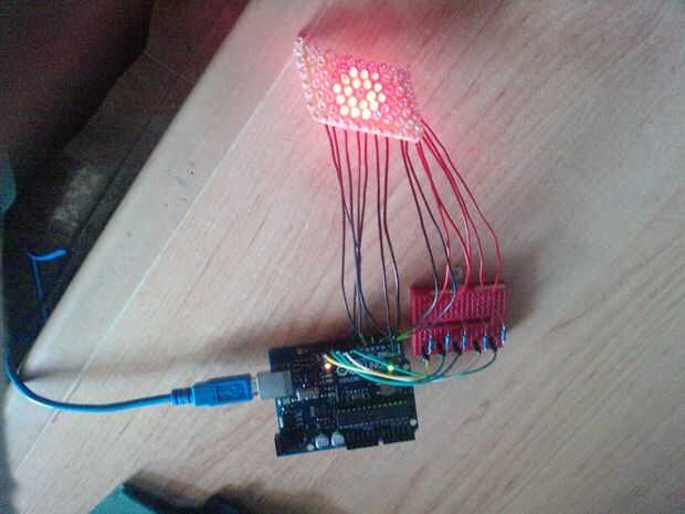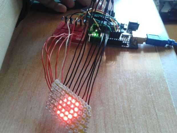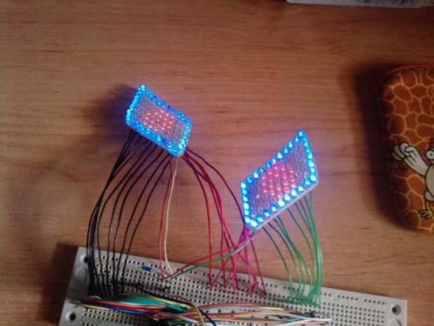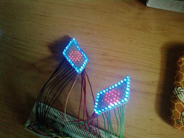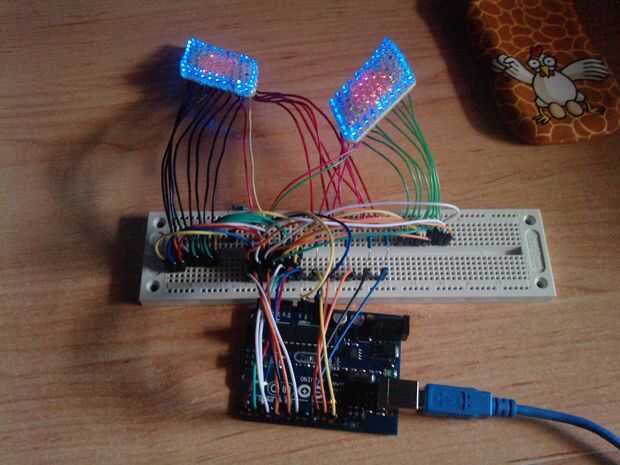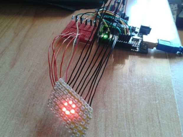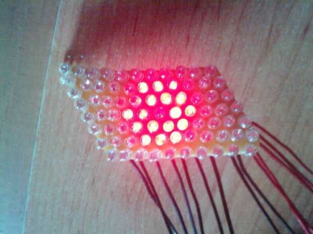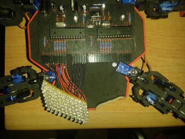 Es consiste en una franja de 32 LEDs azul alrededor del borde y una matriz de 5 filas y 9 columnas de LEDs de color rojo. Así la matriz puede mostrar diversos tipos de estudiante y se puede mover a lo largo de la matriz.