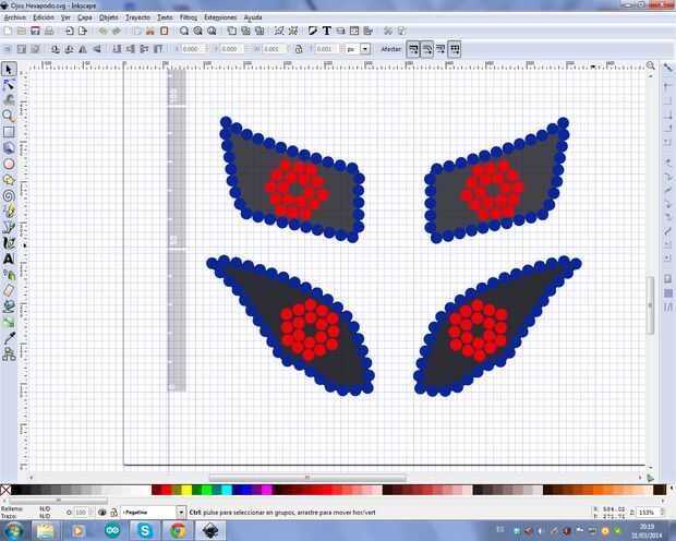 Estaba pensando en cosas pude añadir a mi hexápodo y una de las cosas que se me fueron sumando buenos ojos. Decidí añadir los ojos a hexápodo para dar más expresión a los movimientos o expresar acciones. He diseñado algunos bocetos en papel de diferentes formas de ojos. Al final me decidí por el diseño que se puede ver en las fotos.
