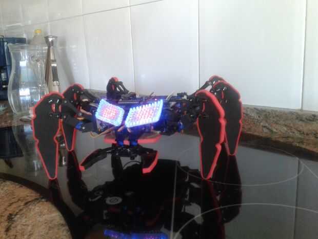 Segundo Video (más o menos lo mismo, salvo el movimientos más rápidos de la mano):https://www.youtube.com/watch?v=zepHB4h5JS4&featu...Este es mi hexápodo, se basa alrededor de hexápodo de Phoenix de Lynxmotion y corre una versión modificada del códig
