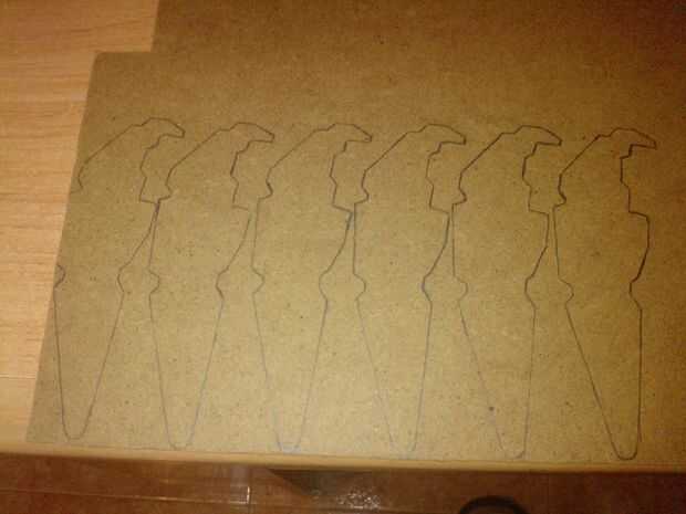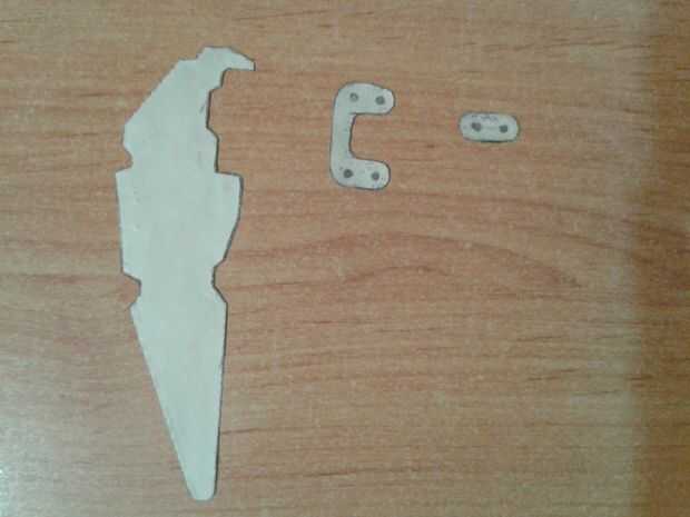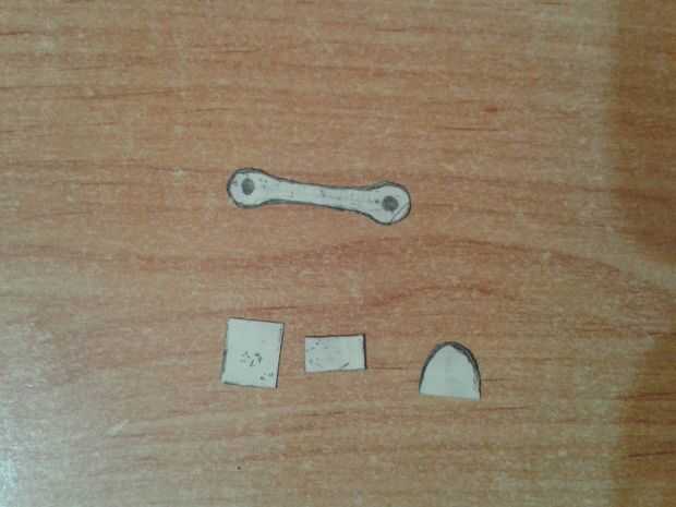 Diseñé las piezas según el tamaño de servos SG90. El archivo de CAD es sólo para referencia. Diseñé las plantillas antes en papel. He utilizado una hoja de madera de unos 3 mm de espesor. Después de tener las plantillas el próximo paso es pasarlos a la tabla de madera.