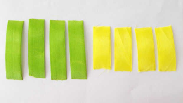 Hacer piezas de cinta de color verde y amarillo colores en 9 cm y 6 cm respectivamente.