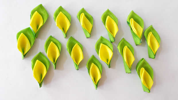Doblar la cinta como se muestra en el tutorial paso a paso para hacer los pétalos.