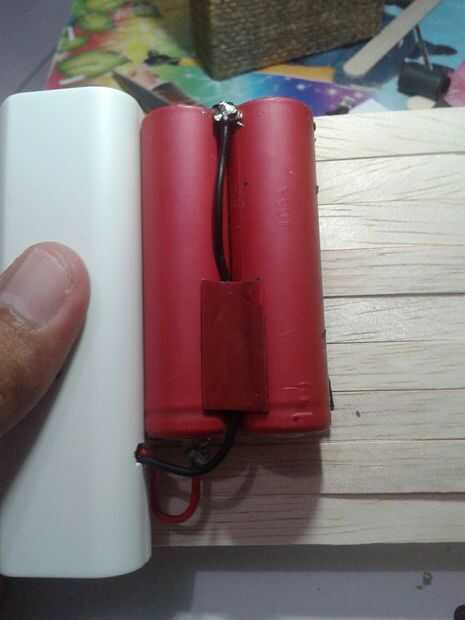 La batería extra a la parte interior del Popsicle del palillo y soldar el cable a la batería extra, hacerlo con cuidado (véase el cuadro)
