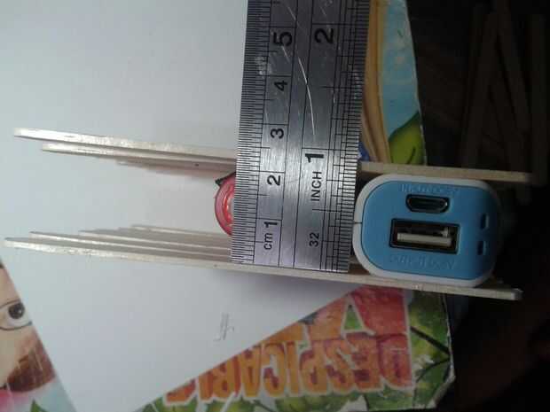 Paso 4 en la otra superficie de caja de banco de potencia y obtener la longitud del espacio entre paletas hace y corta un pequeño palo según la longitud. (ver imagen)