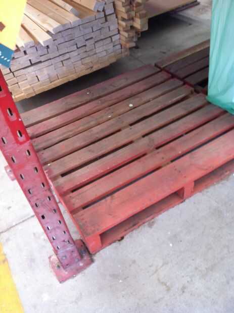 Buscar una tarima usada - quería dejar mi banco sin refinar y fiel a su forma original (es decir no lijada atrás) así que fui con una roja. Tratar de evitar una plataforma que está demasiado dañada o deformado (algo que no se pudo comprobar correctamente). Tenga en cuenta que una plataforma estándar (aquí en Australia) rendido suficiente madera para este proyecto. Puede desea o necesita adaptarse a las medidas en caso de que su dimensión de plataforma son diferentes. Nuestros son aproximadamente 42 pulgadas ancho y profundos. También no ir a robar una paleta - ver si puede encontrar un regalo viejo