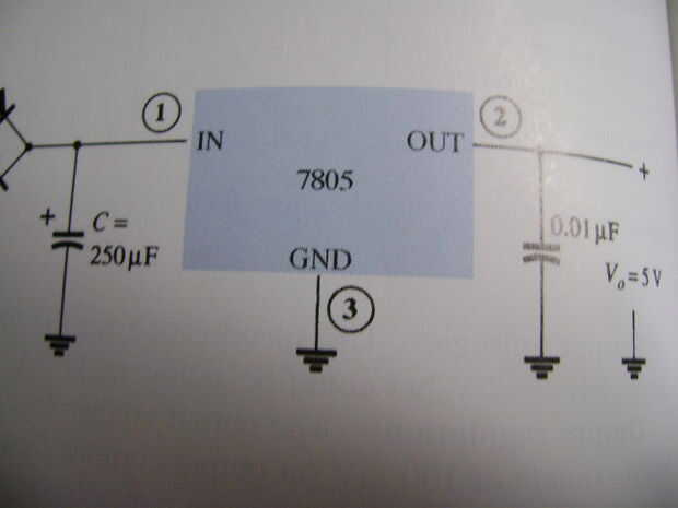 Uso el 7805 para la fuente de 5V, esto es mucho siguir adelante. (Imagen)