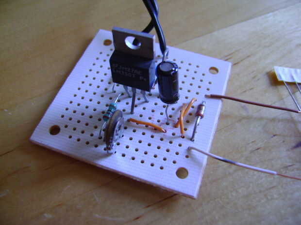 El LM350 consigue muy caliente. Esto es donde usted puede Agregar un disipador de calor.
