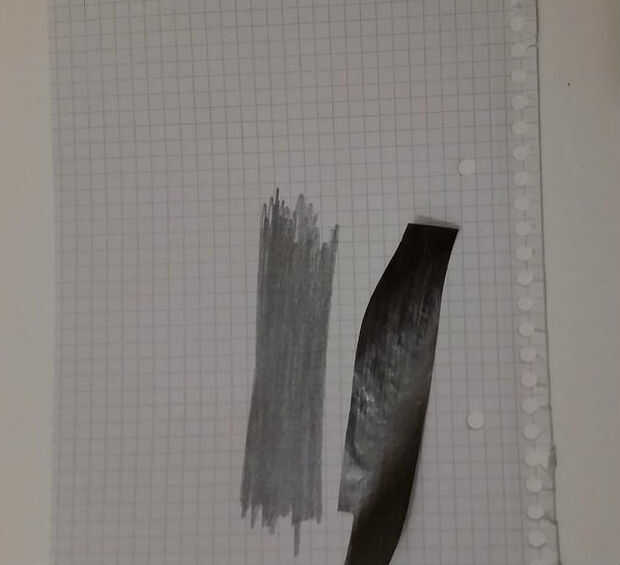 Ahora usted necesita hacer algunas líneas sobre un papel hasta tener el color del papel negro en la derecha, hacer garabatos en una superficie de al menos 1,2/12 cm se puede hacer más grande, más grande es mejor.