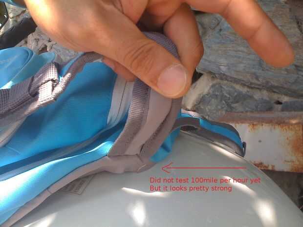 este es el aspecto final de la bolsa. Es una mochila normal comprada en tienda de ropa al aire libre. ($7) Hay 3 pequeños imanes muy fuertes a la baja de la bolsa. De esta manera usted puede tomar fácilmente aparte su bolsa como una mochila.