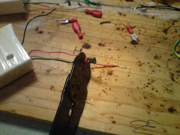 Ahora prensar los conectores a los cables de neutro de los enchufes hackeados