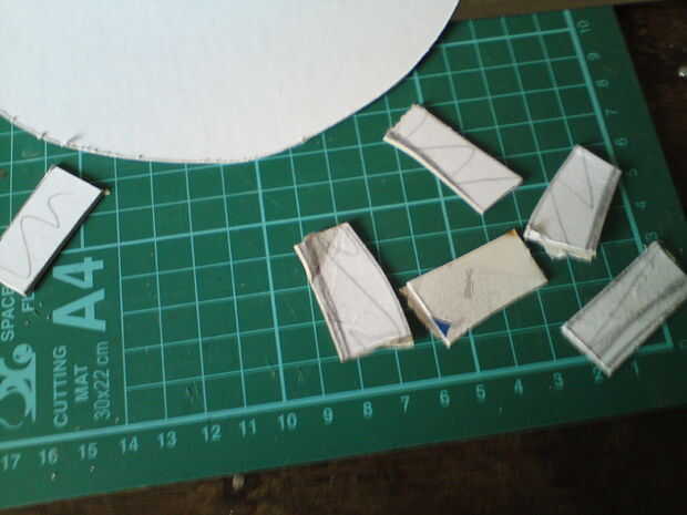 Ahora acaba de obtener cualquier trozos de tarjeta y hacer 'fichas' a la cornisa a la estación así que pegamento a la repisa donde quieras.