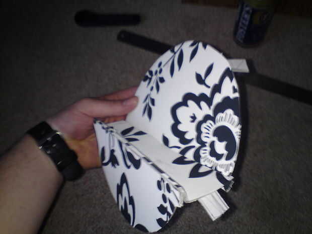Poner las piezas del estante en las muestras de fondo de pantalla que tienes en la tienda (see, ¡ gratis!) trazar el contorno, simplemente cortar y pegar! Cuando seca rebanada a través de los cortes realizados para ranurar y pegamento en la pieza frontal en la parte que dobló antes, esto es lo que terminó con.