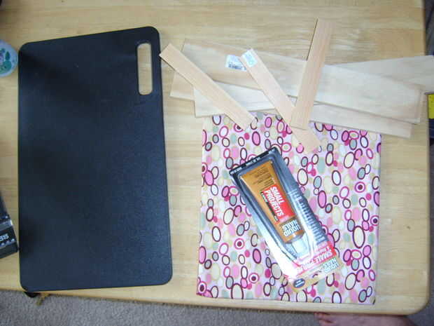 Una tabla de cortar - tengo éste de Ikea a la venta, pero puede utilizar cualquier superficie plana que será la parte superior de su escritorio. Una cosa a tener cuenta que quieren que sea duro y resistente al calor (esas laptops llegar fundidos caliente). Por último en mi caso es el color que quería que la parte superior, así que no necesito pintar cualquier cosa.