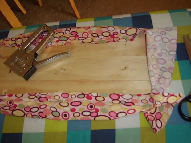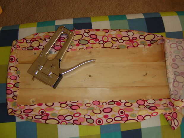 En primer lugar, línea de la base de la funda de almohada y un lado largo de la grapa. La do uno de los lados cortos, y luego el otro lado largo. He utilizado una grapadora para trabajo pesado con grapas de 1/4". Tener cuidado con esto.