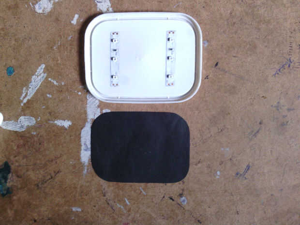 Soldar los LEDs con un alambre y el gancho hasta un adaptador de 12 v CC... y el se realizan.