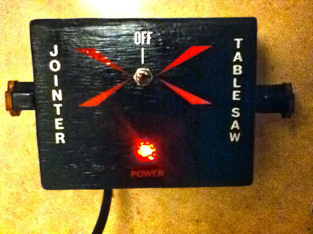Una amiga llamó y dijo que le gustaría para que poder echar un vistazo a su configuración de herramienta de poder en el garaje. Él fue referido que el conmutador ya no era seguro, ver foto adjunta!. Después de una breve visita y unas horas de tiempo de construcción, estaba listo para instalar un reemplazo realmente que hice por sólo $5. Con el toque de una rodilla (o a mano) ahora puede elegir qué herramienta que desea utilizar.