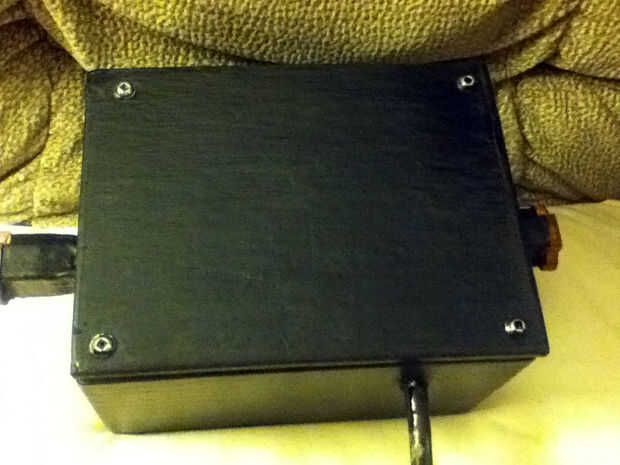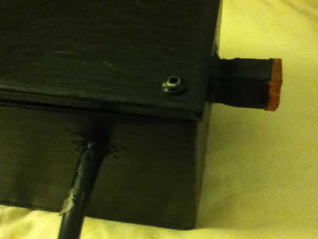 - He perforado un agujero e instalado el interruptor de Recibí de RadioShack. Este interruptor fue elegido específicamente para la capacidad de manejo de potencia, la clasificación resistente y la palanca plana de largo funcionamiento.