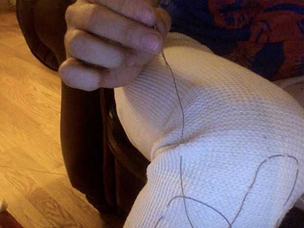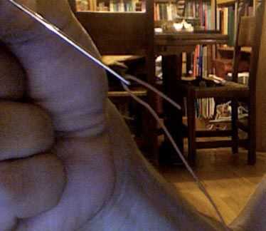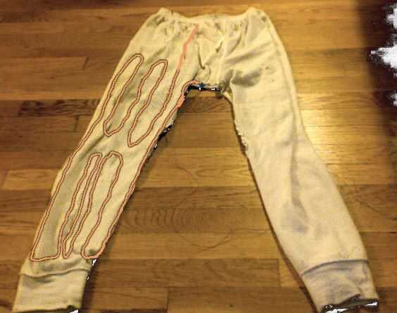 Mida de 15 pies (o el punto medio) y márquelo. Empezando en el punto medio de la entrepierna, alimente el alambre hasta su marca a mitad de camino. Ahora atar una tuerca floja o poner alguna cinta para evitar que la otra mitad de pasar a través. Hacer su camino hacia abajo de la entrepierna y luego siguen el patrón que dibujé a continuación. Usted querrá terminar alrededor de la zona de la cintura. Esto es donde asignamos un conector. Una vez terminado con una pernera. Repita el proceso para la otra pierna del pantalón con la otra mitad del cable.