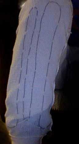 Este nuevo diseño es mejor así porque no constrict las piernas como lo hace el patrón espiral. Hace mucho más fácil hacer los pantalones.