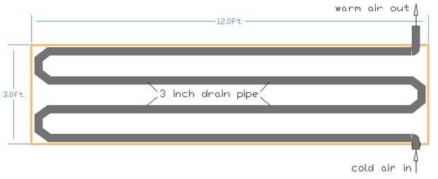 El esquema marrón/naranja muestra los lados. La línea gruesa gris es el tubo de desagüe. En el dibujo se muestra la entrada y salida son en línea, pero realmente ellos fueron compensadas como se muestra en el paso 2.