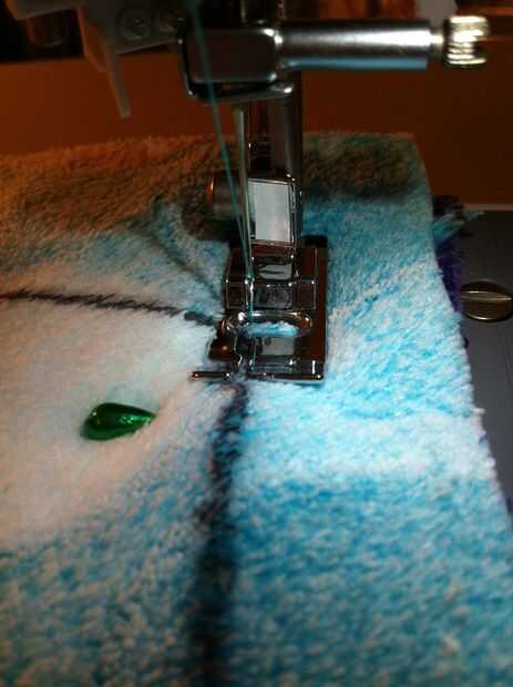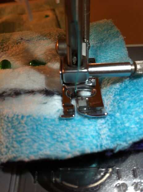 Prender todos juntos, luego coser todo junto dejando un lado abierto para dar la vuelta adentro hacia fuera.