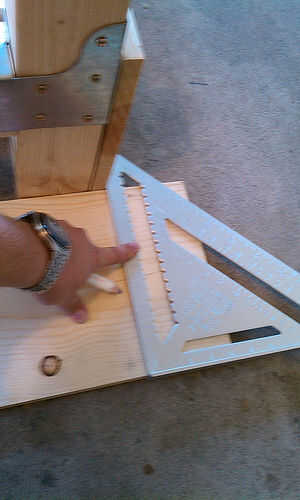 Pero la Junta hasta el final de la 4 x 4. Trace una línea a lápiz en el otro extremo del 4 x 4. Es la línea de corte. Hacer esto para el otro lado. Entonces hacer esto para los pies de la cama, teniendo en cuenta los dos fuera de piezas de pino, para un buen ajuste de enjuague (o hacerla una mitra si eres más talentoso que yo). Realmente de alguna manera roscada esta arriba y la pieza a los pies de la cama estaba cerca de la mitad una pulgada apagado (medida, cortar dos veces...), por lo que las piezas laterales terminaron siendo más largo, que se extiende hasta el borde del pie. Esto es notable y no que lindo, pero todavía funciona. (Se podría decir se "añade el carácter" o algunos otros Toro).