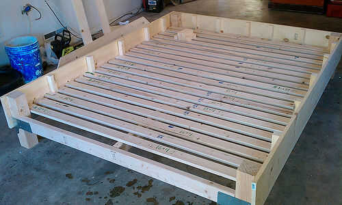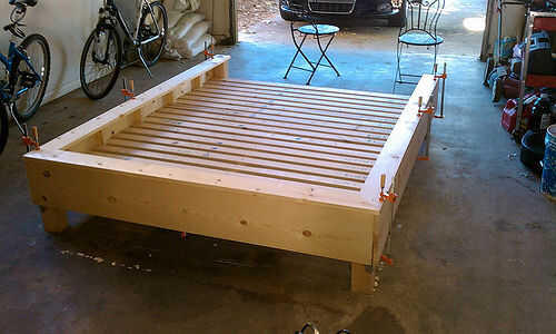 Ahora arreglar, pegar y estos a lo largo del perímetro de la cama del clavo (como se muestra). Que terminada, aplicas la parte superior ajuste encolando amarre y clavado en las ubicaciones apropiadas.