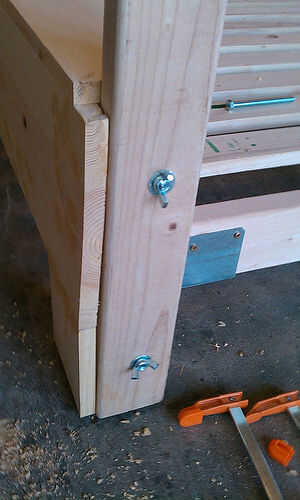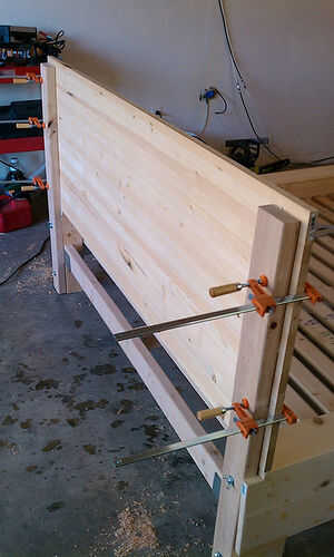 Sujete firmemente en su lugar y perfore dos agujeros de 3/8" hasta 2 x 4 y 4 x 4 detrás de él. Hacer esto para ambos lados. Luego atornille los dos tableros en su lugar usando 5.5x3/8 "tornillos con arandelas a ambos lados de él y de tuercas. Crear tu cabecero alrededor de esto, y entonces cuando usted Desatornillar, su cabecera será exactamente cómo usted desea. Encontré un buen trozo de 24 "x 96" tiras de pino ya pegadas, así que pegados/clavados en allí. Entonces, arrancó la Junta de 1 x 4 hasta lo suficiente para cubrir los lados de la 2 x 4 y enmarca la cabecera de esa manera. Es sexy.