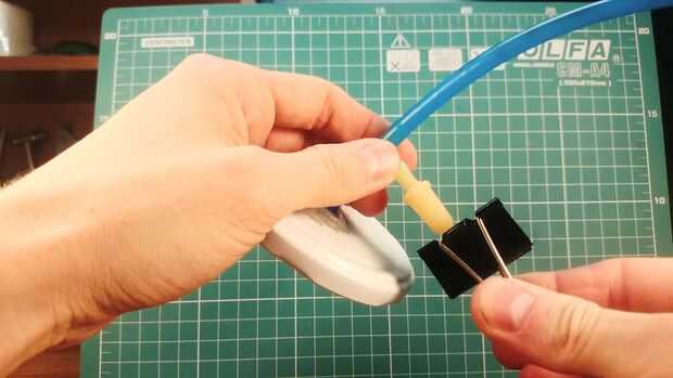 - aguja de una jeringa, cortada y llenada de pegamento (solo un enchufe). Eliminarlo para liberar el vacío.