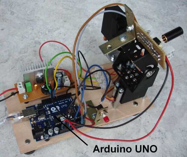 La cámara térmica sólo consiste en el arduino uno, que es la temperatura y controlar los dos servos. El algoritmo es muy simple: Lee la temperatura y dar un paso servo más...