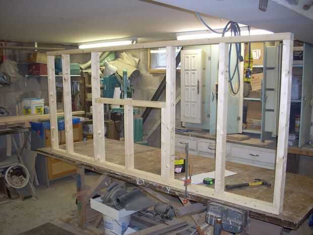 Enmarcada por las paredes de la tienda. Las paredes son 16 pulgadas en el centro de enmarcado y dispuestas a tener una ventana a cada lado y una puerta en la parte posterior.