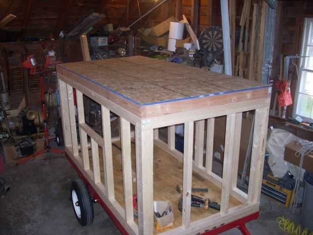 Finalmente instalé una 1/2 pulgada OSB pedazo a la parte superior de las vigas del techo. El camper se enmarca ahora para arriba.