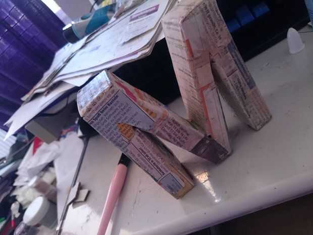 A su vez descarta empaque de espuma de poliestireno en letras hermosa marquesina 3-d! Utilicé GraphicStock.com para patrones de papel de scrapbook para imprimir desde mi ordenador de casa para cubrir estos.Paso 1: Ver el video tutorial aquí!Paso 2: C