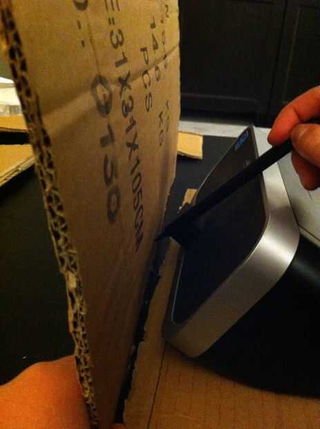 Después de tomar las medidas de su altavoz, cortar el cartón. Asegúrese de que el altavoz se ajusta en el cuadro, y también es la forma de una caja del auge :)