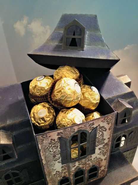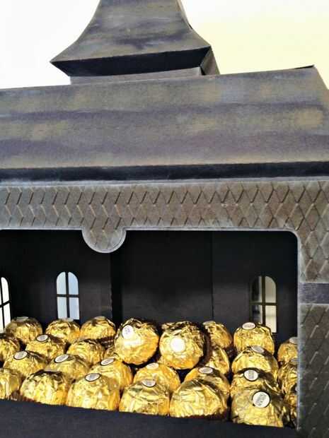 Cuenta con dos espacios para guardar sorpresas o trata. El techo en la parte delantera se levanta apagado para revelar un espacio de almacenamiento. La parte posterior se abre hacia abajo para rellenar con un montón de diversión cosas.