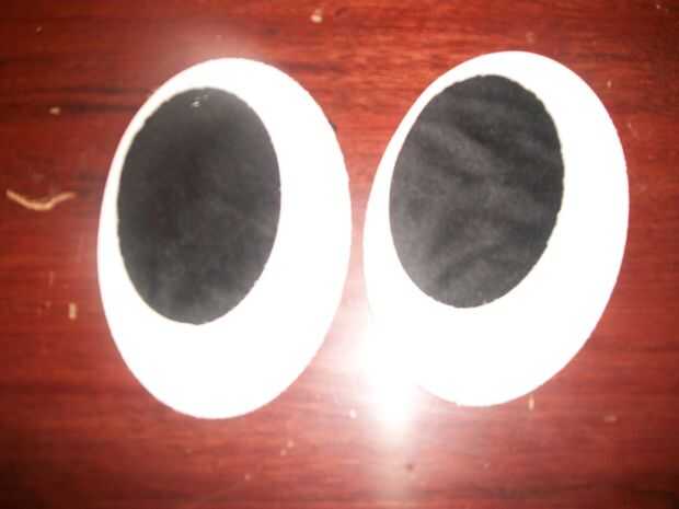 he utilizado la crema color paño grueso y suave cortado en 1/4. Corte a un punto en el extremo de cada una de las cuatro tiras y luego coser a todos juntos para conseguir la forma curvy. Utilicé tiras de lana amarillo para el pelo y había trenzado a cada lado. Yo también también forma parte de una percha y polar amarillo pegado alrededor de él. Esta pegado a la cabeza y la trenza al alambre cubierto de lana para sujetar las trenzas hacia fuera. Los ojos son de espuma blanca, la parte inferior la mitad pintado de luz azul con un endurecedor de tela / azul colorante mezcla de alimento. Después de que seque me había pegada a una tela escarpada negra a él y luego pegar todo en la cabeza. Usé una tira de espuma por la boca también. Corrió un poco fuera de sala, me gustaría haber tenido más espacio para la cara.
