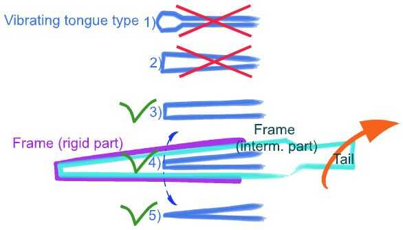 Esto sólo está prohibido por la geometría de la lengua. Como la lengua se convierten en "corta" durante la vibración (la lengua vibra en un? hiperbólica? forma/modus), el final que es mayor que la base encontrará en su recorrido un camino más estrecho que su geometría permite. Este camino resulta en una parada del movimiento.