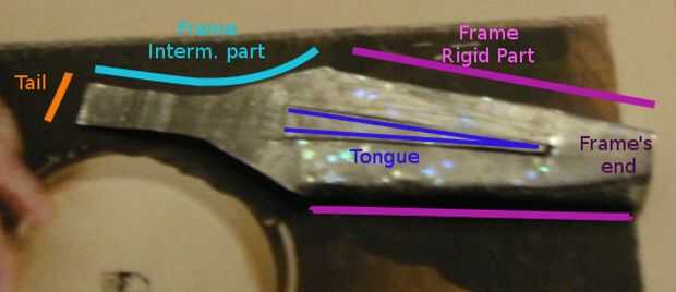- prebenda los lados de la "arpa del judío" como se muestra en la figura 1, a lo largo de la estructura (120° será óptima), hasta unos milímetros antes de que comience la caña. tanto la sexta imagen