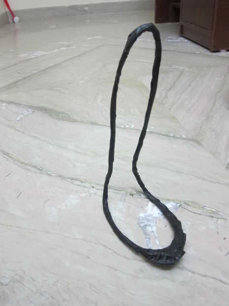 En primer lugar, tomar un largo de acero o alambre de hierro; Usé una que se utiliza para el propósito de la construcción. No es la cuestión que lo que vamos a utilizar, tenemos que el soporte que duro que es la materia. Doblar el alambre como si se ve en forma ovalada. Hacer uso de su codo para hacer el óvalo. Más el espesor es, más fuerte será. Luego, doble el óvalo para hacer como soporte. Y cubrirla con cinta aislante para que no te duele, (es una casa de bajo presupuesto hechas ventilador. más barato las cosas utilizas más el beneficio se obtiene).