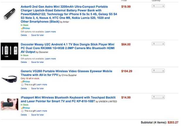 Todos los componentes fueron comprados en Amazon, que hace el proceso organizativo de las piezas fácil y rápido.