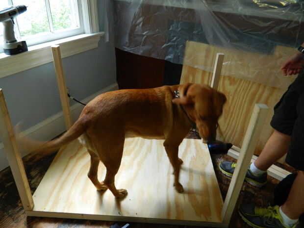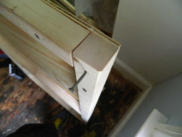 Tomar las 6 x 26" verticales y utilizando 3" tornillos primero conectar uno a cada esquina. El tornillo debe ir a través de la parte inferior de la base y la base de madera 1/4" en la vertical. Detener en las otros 2 verticales de la que damos más adelante.