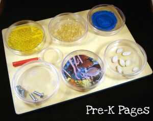 Esto haría una gran adición a su centro de ciencia de clase. Los estudiantes pueden usar la lupa para examinar los elementos dentro de los platos.