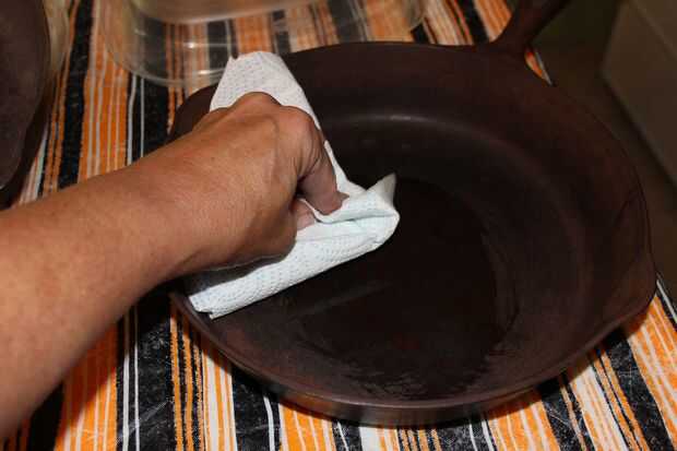 A continuación poner una pequeña cantidad de aceite vegetal o aceite sólido en su cacerola y difundirlo alrededor uniformemente y escasamente con un frente de toalla de papel, de nuevo y no se olvide de la manija.