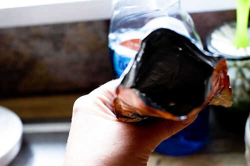 Rebanada de abrir la parte inferior de cada paquete. Lavar, enjuagar y secar cada una.