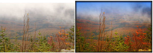 Aquí hay algunos ejemplos más de instantáneas que se transformaron.  Las imágenes de paisajes fueron fusiladas en Mt. Washington en un día hermoso de otoño, pero las nubes alrededor de la cima de la montaña hace difícil captar los vibrantes colores.