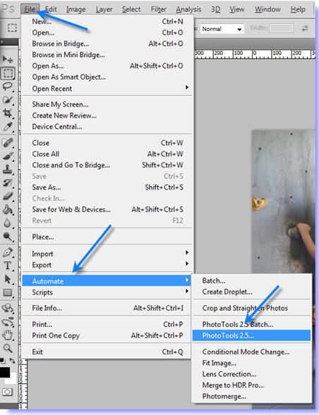 En Photoshop click File--> Automatización--> foto herramientas 2.5