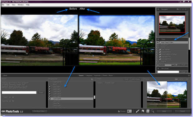 Photo Tools luego abrirá dándole un antes y después de la visión junto con una amplia biblioteca de efectos.