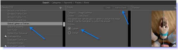 Seleccione Global aclarar u oscurecer con la opción de aclarar y haga clic Agregar a pila.